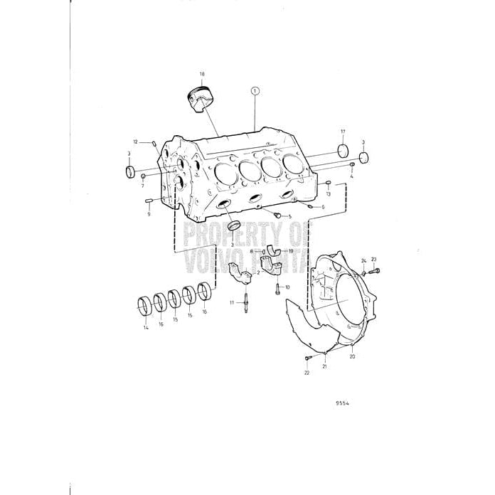 Volvo Penta Exploded view / schematic Cylinder Block and Flywheel CoverNormalized SKU: 841056