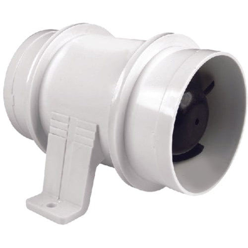 In-Line Bilge Blower - 4"Spark proof. Blower meets or exceeds the following standards: ABYCH H-2, USCG 33 CFR Sections 183.410 and 183.425, ISO 8846 and 909, SAE J1171. Housing is molded, tough corrosion-proof ABS plastic. Rugged built-in mounting brackets for easy installation. Molded tabs on all hose flanges provide positive hose connections. Ignition protected. Spark proof. 18 gauge marine-grade tinned wire.