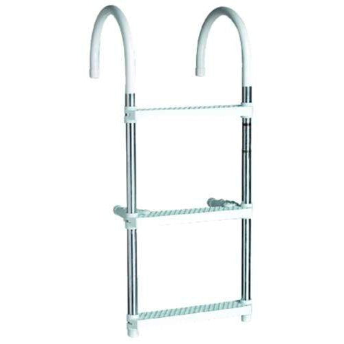 Non-anodized aluminum 7/8" tubing. Polyethylene steps, 11" hooks and support legs. Folds flat for storage. Portable, hooks to the boat gunwale.