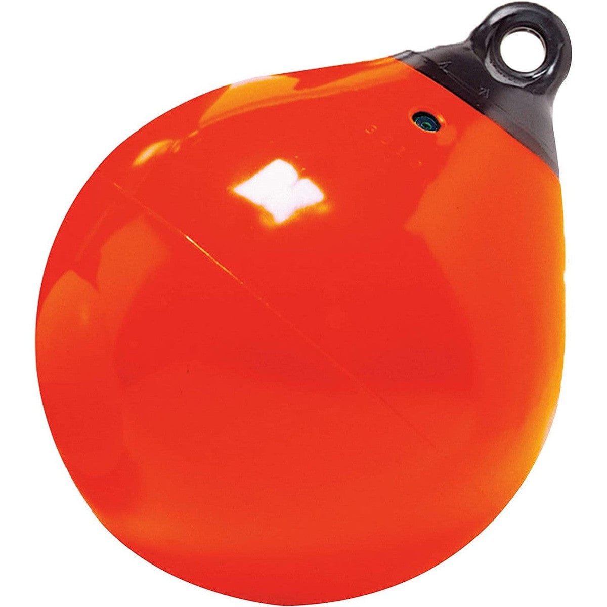 Tuff End buoys feature heavy duty seamless construction to meet the punishing demands of the commercial marine industry. 34 inch-Orange with 107 inch circumferance-1-1/2 inch hole diameter and 790 lb. buoyancy.