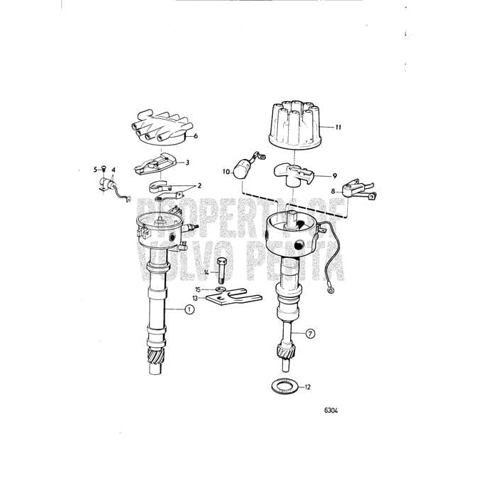 Volvo Penta Exploded view / schematic Distributor with Installation ComponentsNormalized SKU: 835308