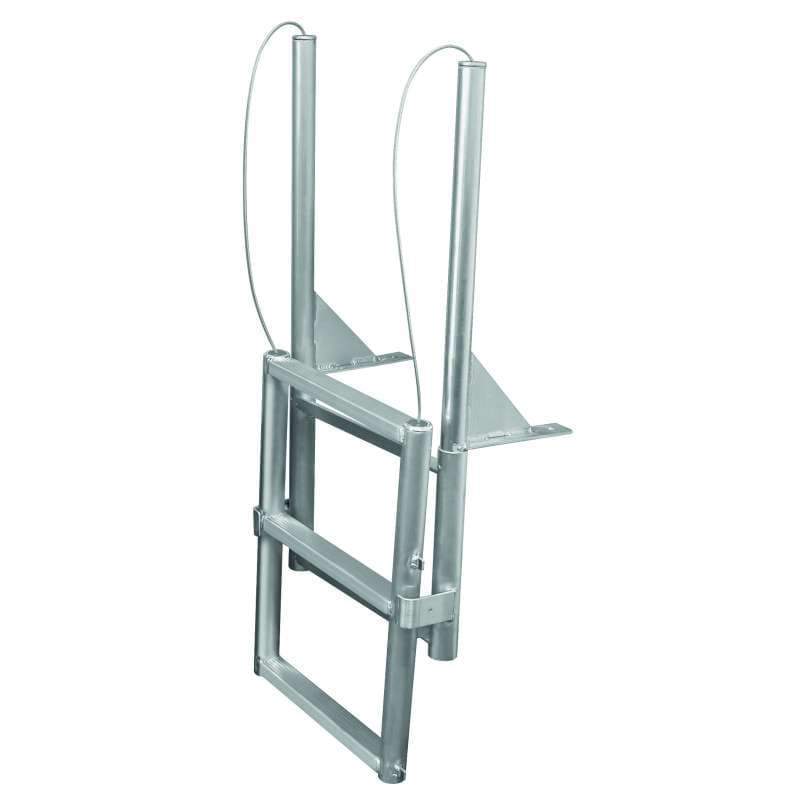 Fixed portion extends 15" down from top of dock. Anodized aluminum. Perfect for floating docks. Double rung locking mechanism is extra sturdy. 2" wide standard step. 750 lb. capacity. Width: 21", Handle Depth: 8", Step Height: 12", Step Width: 19".Normalized SKU: EFL3