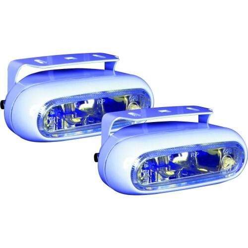 Low profile clear fog light provides maximum road clearance while enhancing any vehicle. Features a 55-watt halogen bulb, ION-coated lens and white powder-coated metal housing. This slim, oval light mounts above or below the bumper. May be used as a marine docking light. Screws or double-sided tape for installation on any surface. Kit includes two lights, wiring, illuminated rocker switch and installation instructions.