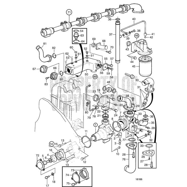 Volvo Penta Exploded view / schematic Water Pump, Water Filter and Thermostat: A