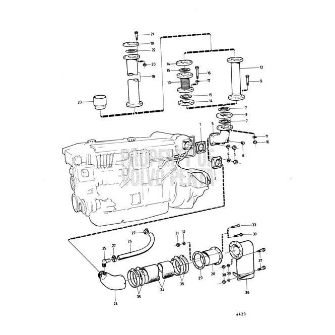 Volvo Penta Exploded view / schematic Exhaust Bend, Hose and Muffler