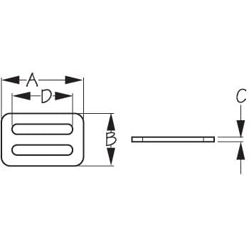 Seadog Webbing Slide - 304 stamped stainless 2-1/2 x 1-1/4 inches is 1/8 inch thick and the openings are for 2 inch strap or webbing