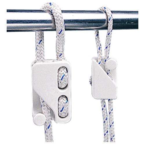 Injection molded nylon construction. A quick and easy way to hang fenders from guard rails, stanchions or any other suitable part of a boat. The cleat is attached permanently to the fender rope so it cannot be lost. To hang a fender, all that is needed is to place the fender rope over the guard rail and cleat is in the correct position. Instructions are provided with each cleat. Handles lines from 1/4" to 1/2". Display packaged 1 each.Seadog Nylon Fender Cleat 327234-1
