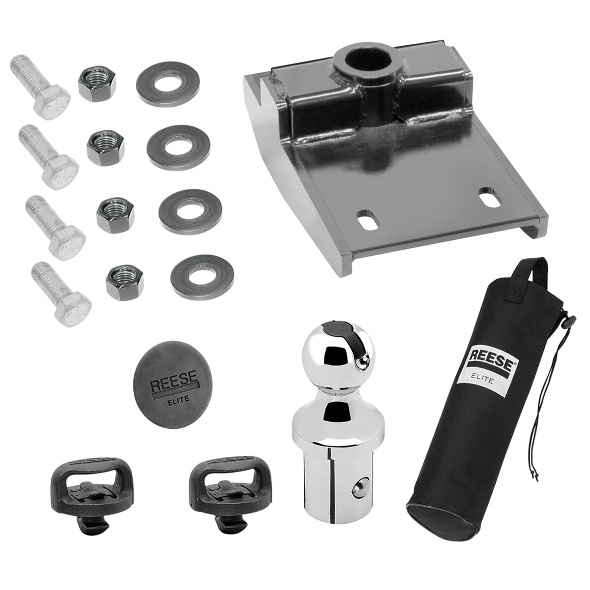 The Reese 30158 Elite Under-Bed 25K Gooseneck Hitch fits Chevrolet Silverado / GMC Sierra 2500 and 3500 HD pickups 2011-2016. Elite Gooseneck Hitches offer an easy under-bed bolt-in installation and are rated for 25,000 lbs. gross trailer weight. Passes SAE J2638, the toughest industry standard. Includes a Pop-In Ball, two safety chain holders that attach directly to the rail system, hole covers that keep the Pop-In sleeve free of debris, and a storage bag.