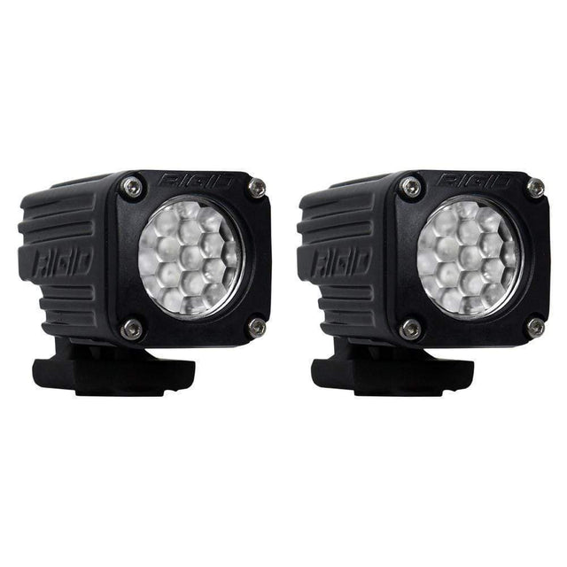 Most vehicles have very inadequate backup lighting, which can be a major safety problem. RIGID makes it easy to add compact and powerful backup lighting to any vehicle with the RIGID Ignite™ Backup Kit. The Ignite Series Accessory Lights are small but pack a lot of power with 1000 raw lumens in a light that measures just 1.4” x 1.4” x 2”. The Backup Light Kits are available with a pair of either flush mount or surface mount Ignite lights along with mounting brackets and related hardware. While a wiring harness is not included, the powerful LEDs in each light consume less than one amp each, so powering them is often as easy as tapping into the vehicle’s existing backup lighting circuit.