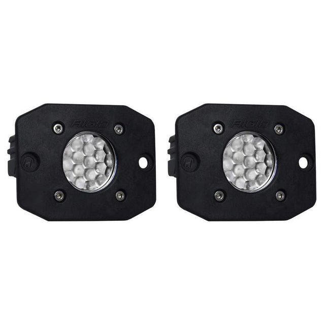 Most vehicles have very inadequate backup lighting, which can be a major safety problem. RIGID makes it easy to add compact and powerful backup lighting to any vehicle with the RIGID Ignite™ Backup Kit. The Ignite Series Accessory Lights are small but pack a lot of power with 1000 raw lumens in a light that measures just 1.4” x 1.4” x 2”. The Backup Light Kits are available with a pair of either flush mount or surface mount Ignite lights along with mounting brackets and related hardware. While a wiring harness is not included, the powerful LEDs in each light consume less than one amp each, so powering them is often as easy as tapping into the vehicle’s existing backup lighting circuit.