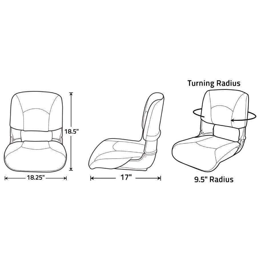 With our bullet proof design and heavy duty construction, our Tempress All Weather High back boat seats might outlast your boat. Tempress High Back All Weather seats are made with corrosion-proof polypropylene seat shells, connected with heavy duty stainless steel rivets. The All Weather features a double contoured seat pan to eliminate pressure points and high density, custom fitted foam padding for all-day comfort. Stylish 30 oz., heavy duty, marine grade UV stable vinyl upholstery increases appeal and durability. Includes (4) 1/4" - 20 x 1" bolts. Allows mounting to any 5" x 5" standard marine swivel (swivel not included), slide or seat spider.