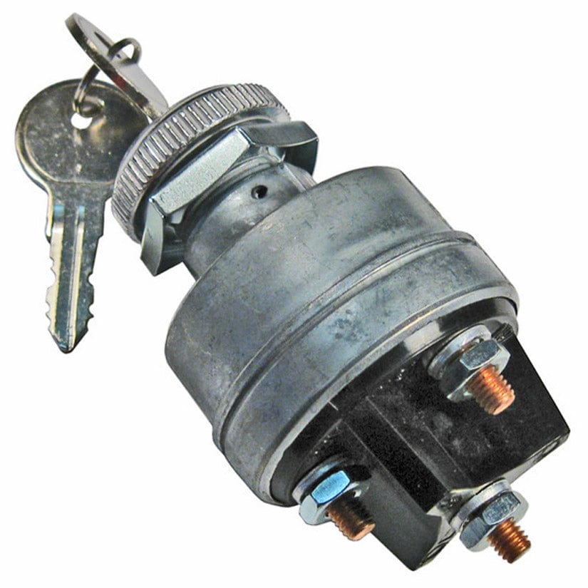 Starter Switch is a 4 position switch, Accessory/Off/On/Start, with 4 screw terminal connections. Heavy Duty die cast metal body provides for a long life, perfect for marine applications. Standard 4 screw terminal hookup makes for an easy install. Includes two keys.