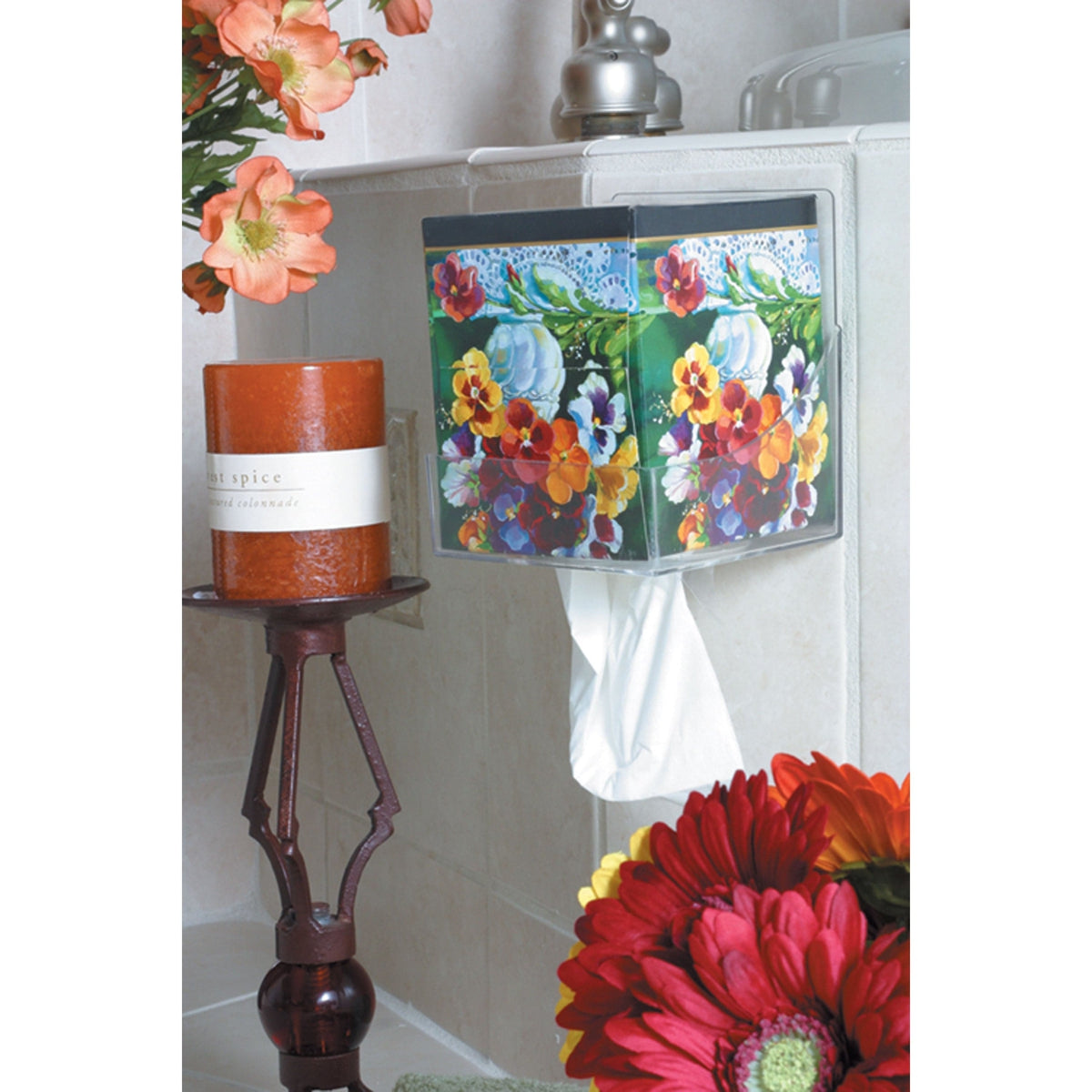 - Keep facial tissues handy in a wall or cabinet-mounted dispenser
