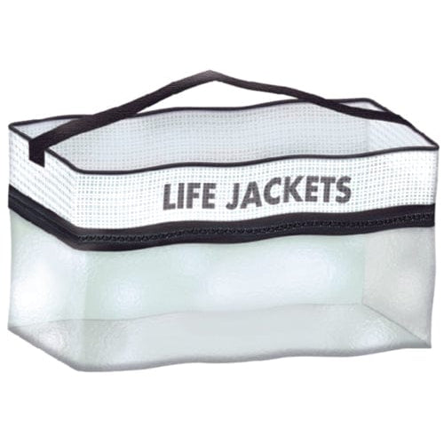 Life Jacket Tote BagClear UV-resistant marine-grade vinyl carry bag. Holds (4) adult-sized Universal Life Vests (Type II PFD).