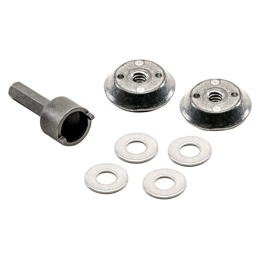 This Security Nut Kit from RIGID Industries makes a potential thief's job much more difficult. It includes two (2) 2.25 x 20 spanner nuts, four (4) spacer washers, and one (1) 1/4" hex nut bit. This kit is designed to work with cradle and weld-on mounts.