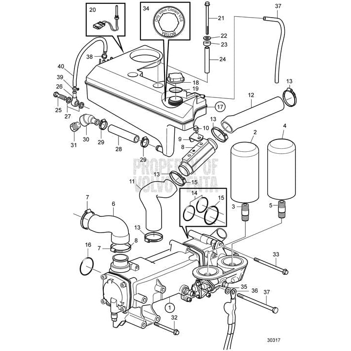 Volvo Penta Exploded view / schematic Heat Exchanger and Expansion Tank
