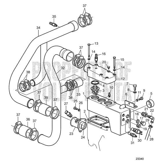 Volvo Penta Exploded view / schematic Keel Cooling with Installation PartsNormalized SKU: 952982