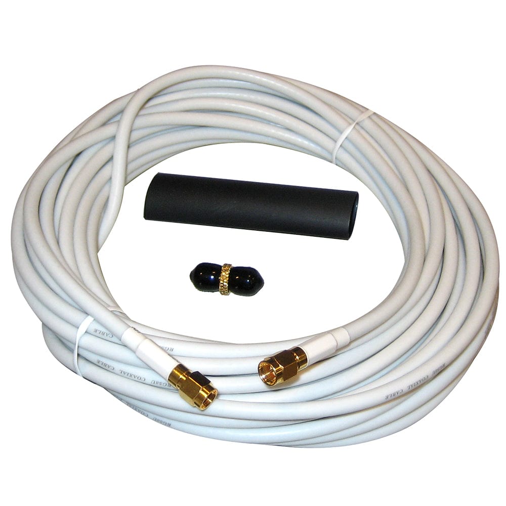 - 10m (33') of marine grade RG58 coax cable with factory-installed connectors on both ends