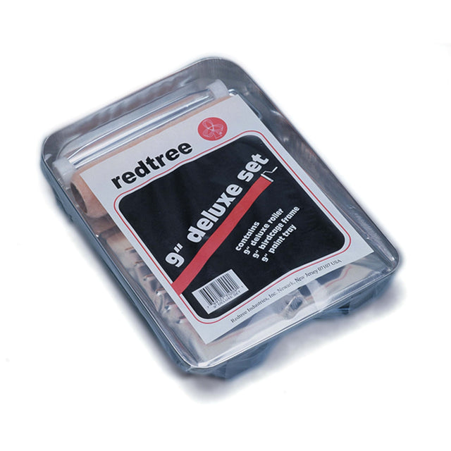 Redtree's Paint Tray Deluxe Sets include a Dynex solvent resistant cover, birdcage frame, and metal paint tray. The cover, tray and frame are designed to fit a 9" paint roller. Deluxe kits are designed for extended use or high-end projects.
