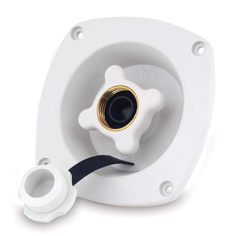 Pressure Reducing City Water Entry - Wall Mount - Gel WhiteThis combination pressure reducing city water entry and check valve diaphragm design prevents high-pressure damage often caused by city water systems. This high performance water entry limits water pressure safely to 50 PSI while meeting or surpassing all check valve code requirements. This in-line pressure reducing water entry includes a check valve. 3/4" GSH Female swivel inlet. 1/2" NPSM - Male Outlet.