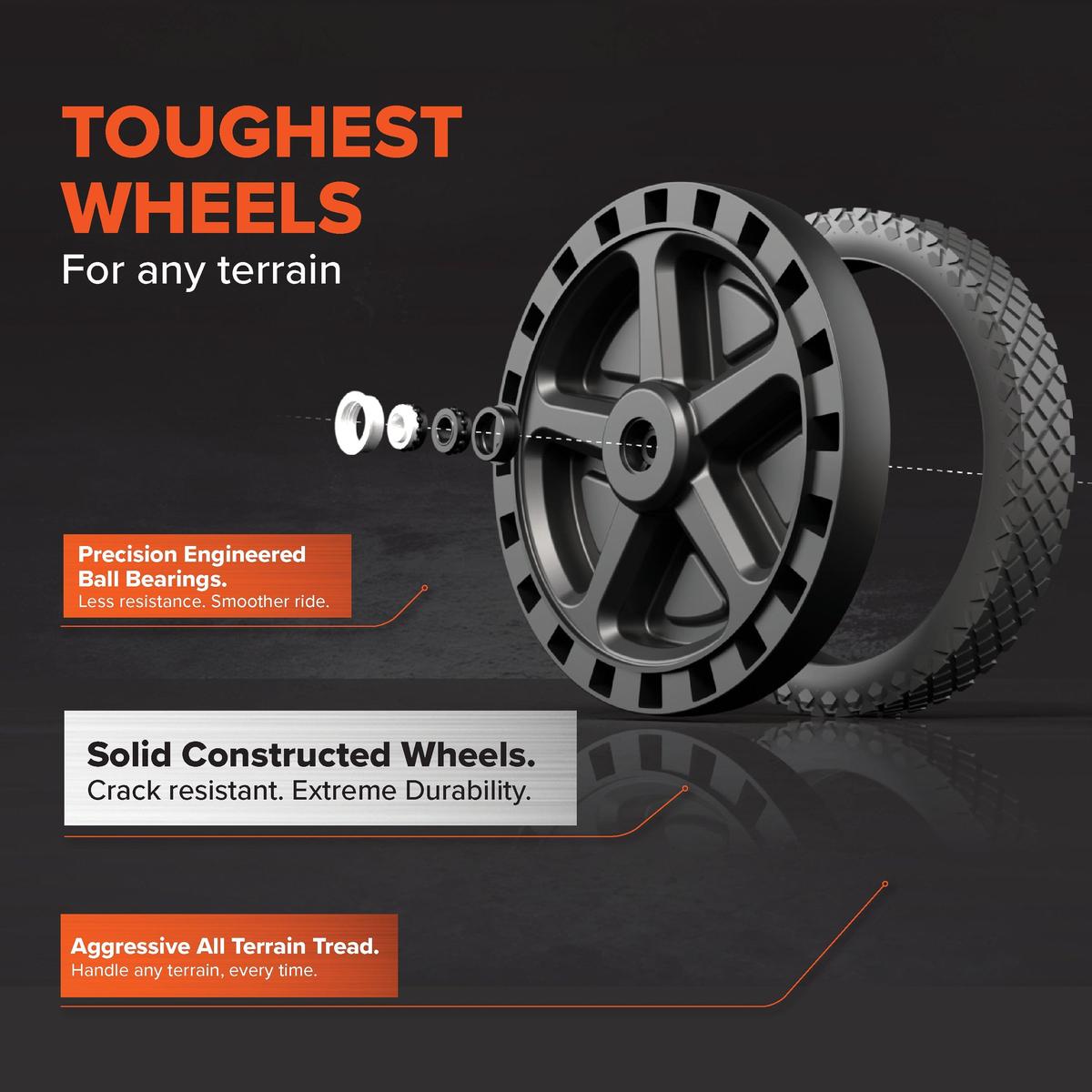 - Large, heavy-duty, no-flat wheels with bearings make transport smooth and easy and removable steel tow adapter allows you to easily roll the tote tank like a suitcase, or tow it slowly behind a golf cart or truck