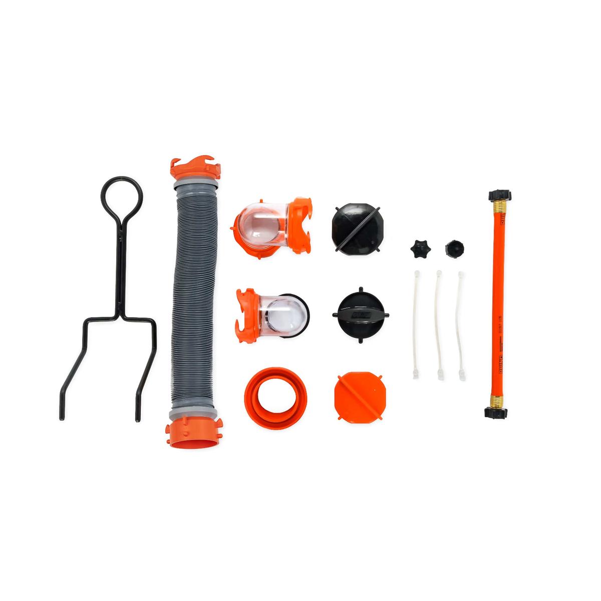 - Ready-to-use kit includes everything needed to transport waste from your RV or trailer to a dump station when you’re parked too far away for a sewer hose; plus accessories to clean, maintain and store the tote tank when not in use.