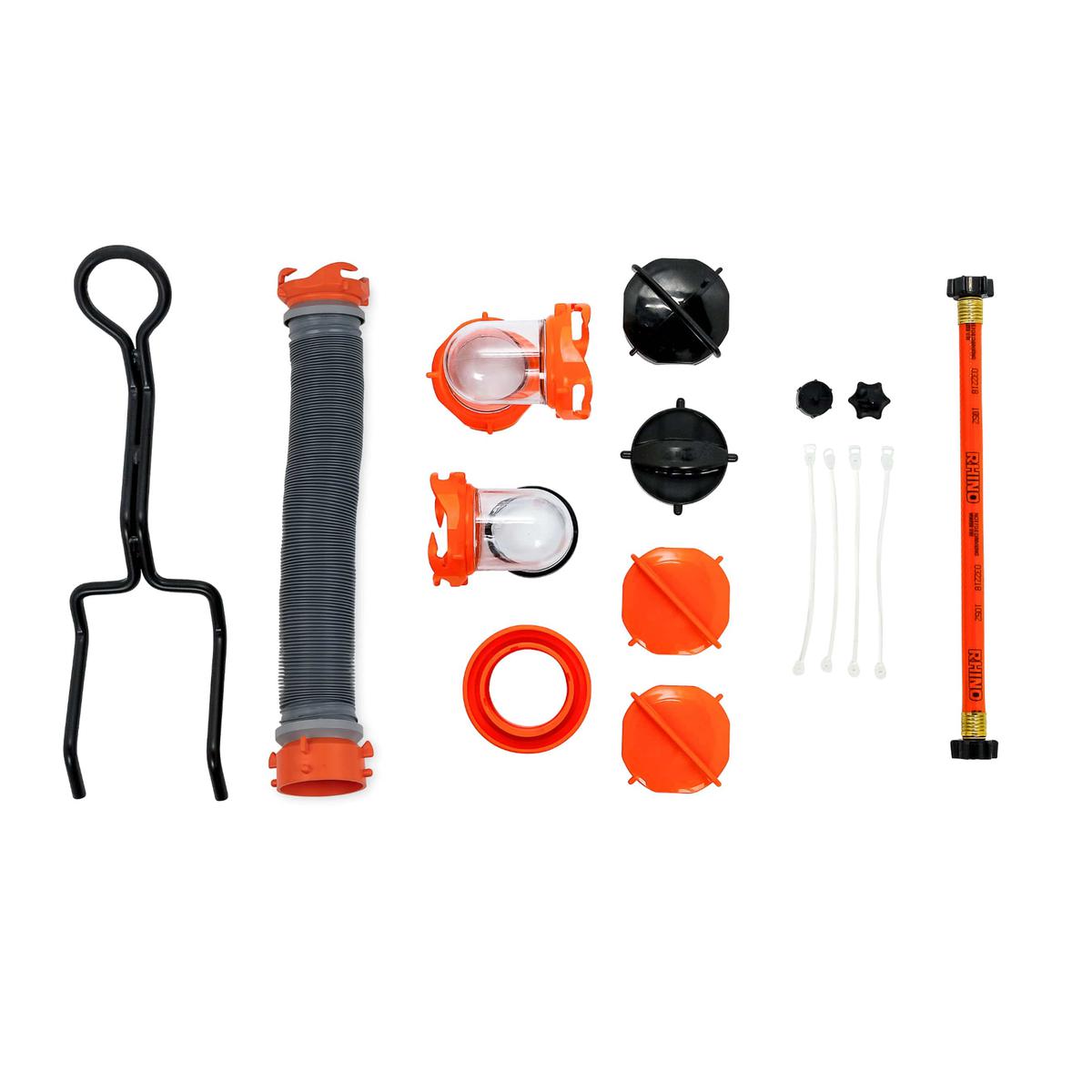 - Ready-to-use kit includes everything needed to transport waste from your RV or trailer to a dump station when you’re parked too far away for a sewer hose; plus accessories to clean, maintain, and store the tote tank when not in use.