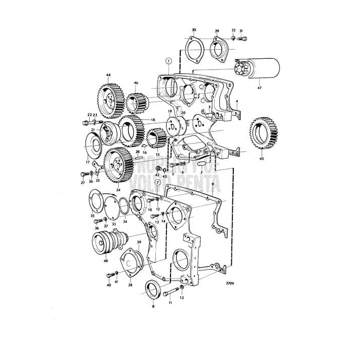Volvo Penta Exploded view / schematic Timing Gear Cover and Gear: B