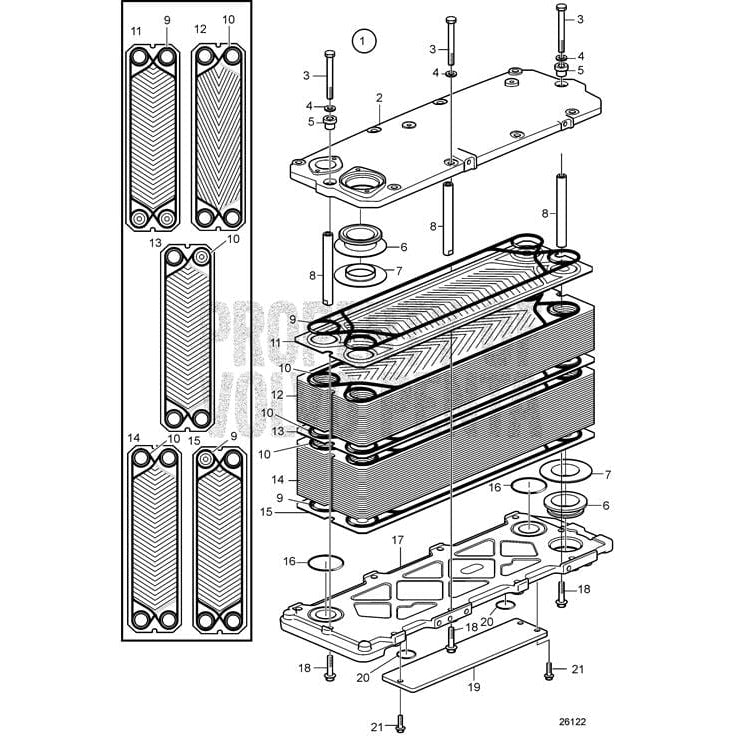 Volvo Penta Exploded view / schematic Heat Exchanger, ComponentsNormalized SKU: 970959