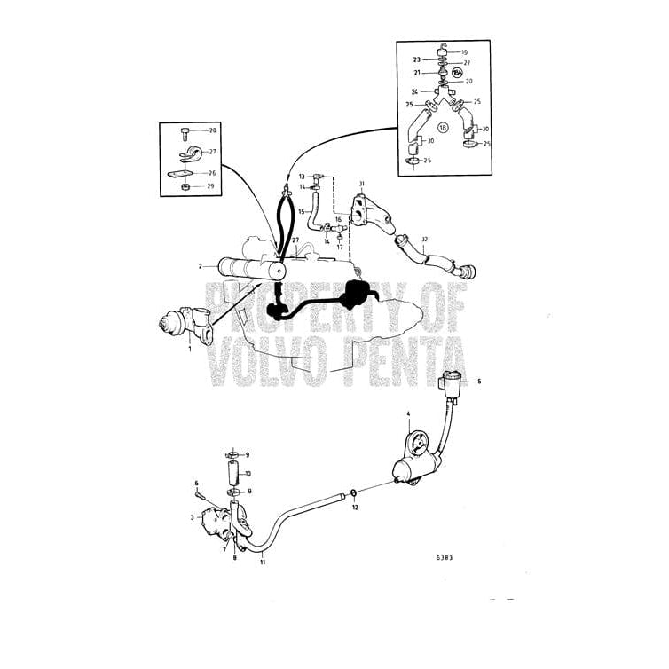 Volvo Penta Exploded view / schematic Cooling System, Induction- and Exhaust Manifold: B