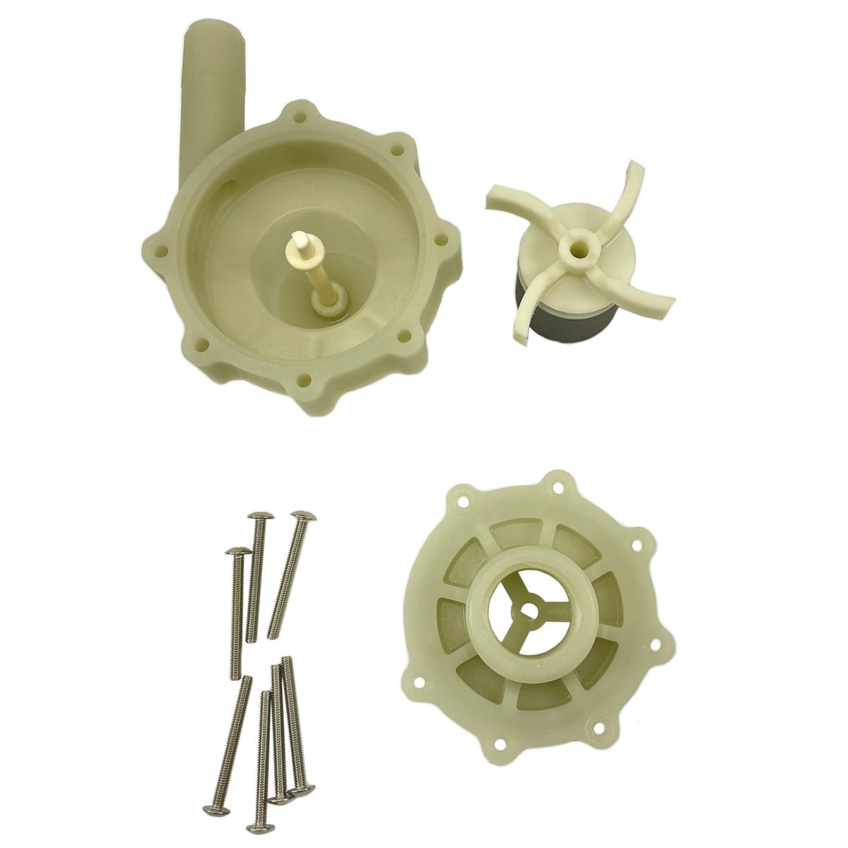 - Kit includes front and rear housing, impeller, ceramic drive, screws, and sealing o-ring