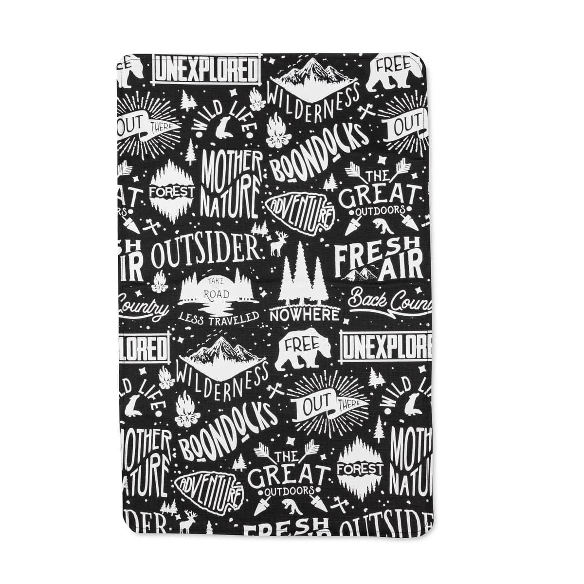 Camco's Life is Better at the Campsite RV Door Window Light Blocking Shade protects your RV interior from the sun and helps keep the interior temperature cooler in hot weather. This shade also provides additional privacy by blocking unwanted outside views. Product features a fun graffiti outsider design. The shade measures 25.25" (L) x 16.25" (W) and is made of black nylon ripstop with a silver reflective backing. Includes hook and loop fasteners for easy installation.