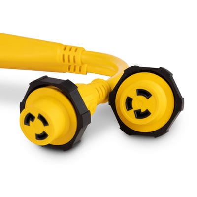 • 50A 125/250V Male Locking to (2) 30A 125V Female Locking Adapters