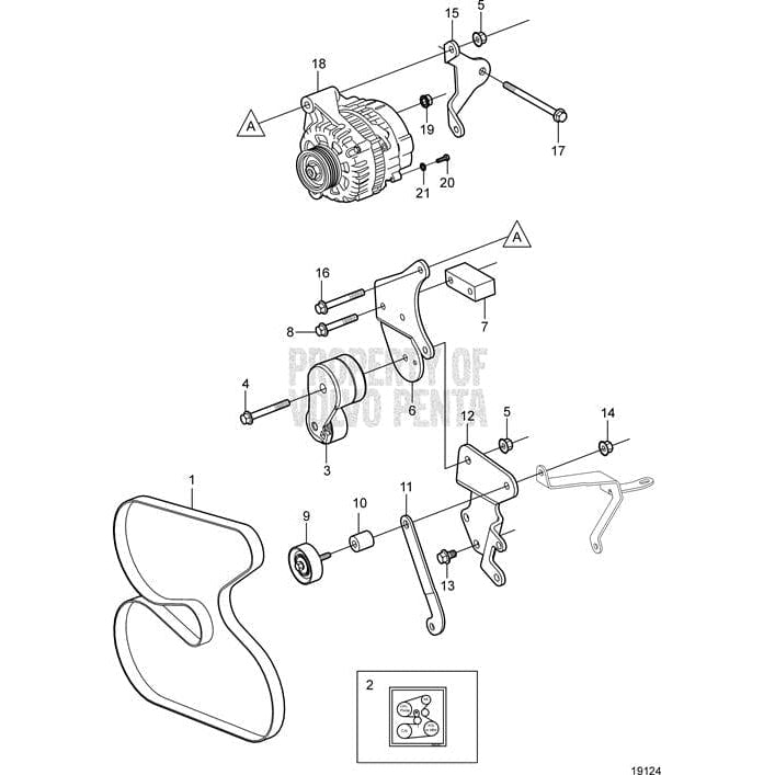 Volvo Penta Exploded view / schematic Serpentine Belt and AlternatorNormalized SKU: 3860481