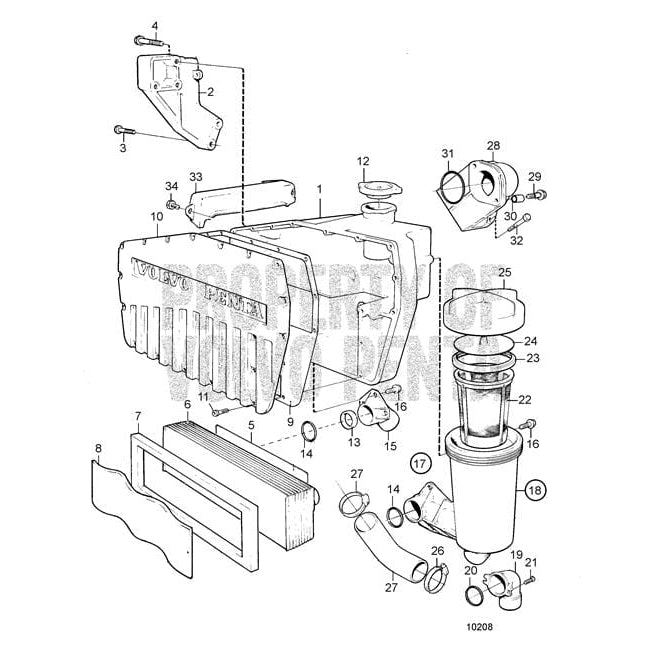 Volvo Penta Exploded view / schematic Heat Exchanger and Water Filter with Installation Components