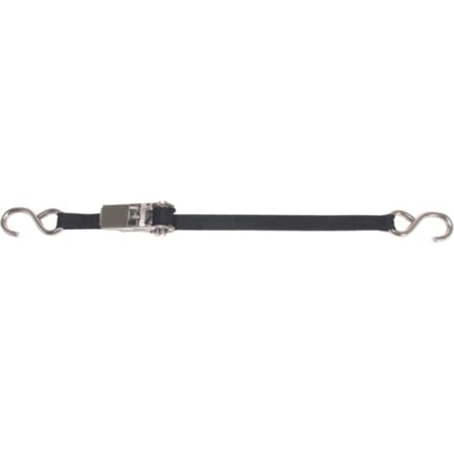 Stainless Steel Ratchet Gunwale Tie-Down 1" x 18'Ratchet gunwale features a 1" stainless steel solid-core ratchet for maximum power and durability, stainless steel trailer hooks, and durable 1" nylon webbing. Clamshell packaged.