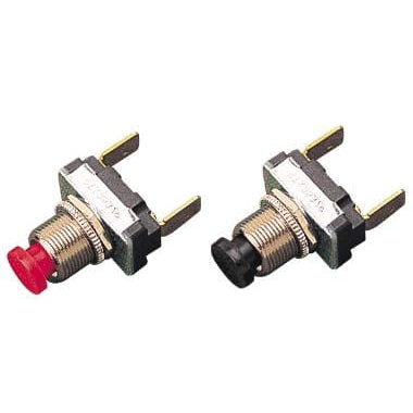 This Horn Button is a panel mounted, push button, momentary On-Off switch for operating fog horns, sirens etc. Mounts in 1/2" diameter hole and is wired with 1/4" QD terminals. This horn switch comes with either a standard black button or bright red button to make it easily identifiable in emergency situations. Maximum panel thickness: 5/16”. Constructed of nylon/phenolic and chrome plated brass.