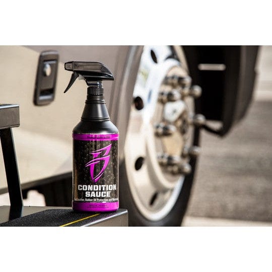 You wouldn’t think of sitting in the sun all day without protective clothing or sunblock. Protect your investment. Unlike generic surface dressings that leave greasy, slippery residue, Condition Sauce is a functional UV protectant designed to block the sun’s harmful rays, prevent fading, cracking and discoloration from vinyl, leather, rubber and plastic while moisturizing the material to provide the stunning ‘like new’ look.