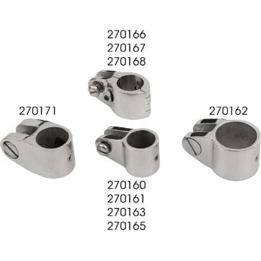 These Slide Fittings are used as part of a Bimini top system to install a new Bimini top, adding additional support arms to an existing one, or customizing a cock pit or sun deck awning. Jaw Slides attach an eye end securely to support tubing. Set screw on back allows you to quickly and easily adjust the placement of these slides where they are needed. Hinged Jaw Slides are ideal for mounting on handrails, or in applications where it is not possible or convenient to slide the fitting onto the tubing. Jaw Slides fit tubing from 3/4‚ù ‚ì 1-1/8‚ù. Set screws can be purchased separately (299999-1). Requires 1/8" Allen wrench to install. Constructed of corrosion resistant investment cast 316 stainless steel. *Stainless tube wall thickness 0.049‚ù.