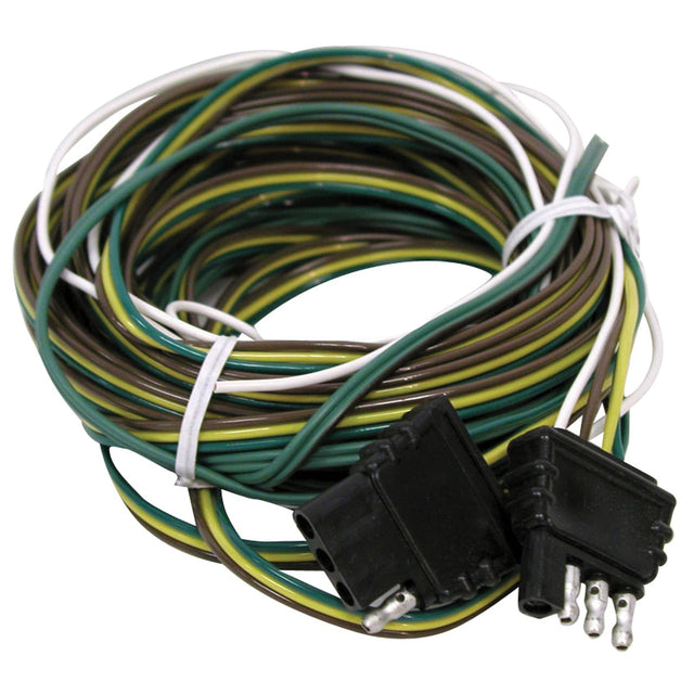 The 25' straight three conductor harness is designed to run down one side or the middle of the trailer with a flat 4-way plug. Includes a trunk connector. Quick and easy installation.