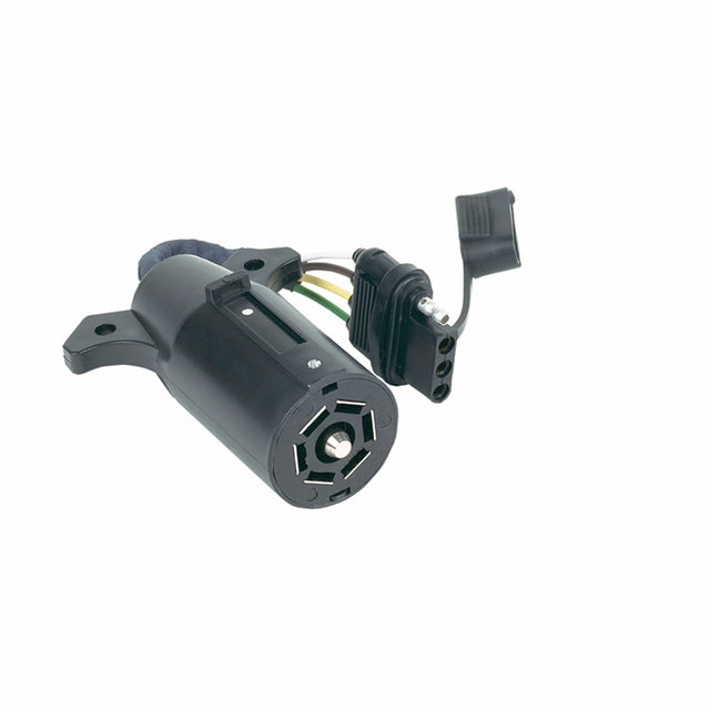 Hopkins 47365 Taillight Adapter - 7-Blade Round to 4-Flat. Constructed to be impact and corrosion-resistant. The ergonomic one-piece design enhances weatherproofing and includes dust cover.