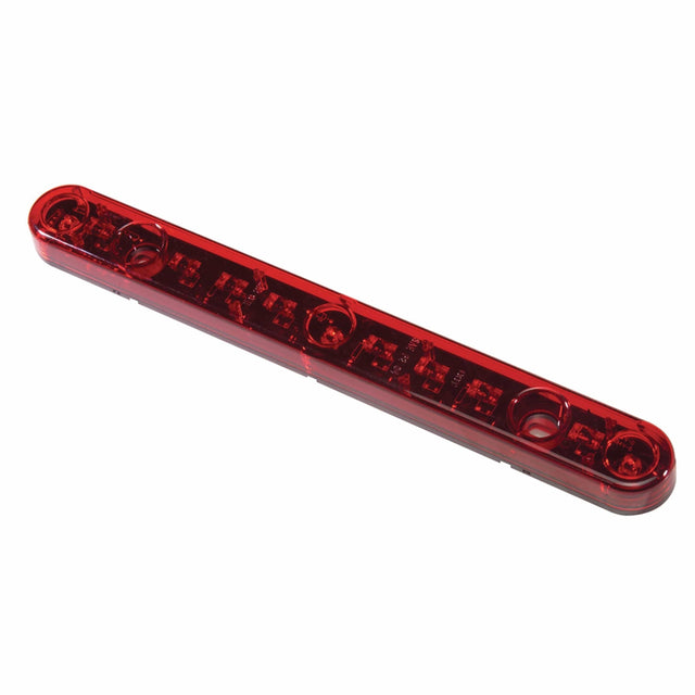 Innovative Lighting's Hylite LED Identification Light Bar features red casing with a red lens. This 2 wire light bar operates 9 to 16V DC systems and features a 3-LED configuration. Required for trailers, campers and trucks over 80" in overall width. Rated at 100,000 hours of service life and has an energy draw of 60 to 65 mA depending on the color. The Hylite LED Identification Light Bar is shock and vibration proof, non-corrosive, impact resistant and is interchangeable with most manufacturers. Features sealed polycarbonate marker lights. Overall Dimensions: 13.50” L x 1.63” W x 0.75” D.