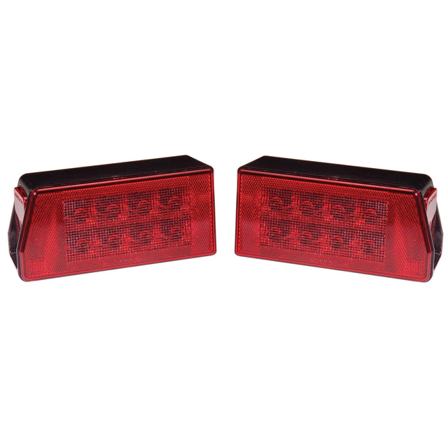 Innovative Lighting's LED Rectangular Tail Light Kit includes both a right hand and a left hand tail light. Fits applications over 80" and has license plate illumination. This 9-LED tail light operates 9 to 16V DC systems. Features 100,000 hours of service life and a sealed polycarbonate lens and housing. The tail light is shock and vibration proof and non-corrosive. This is a submersible tail light. Energy Draw: 280 mA. Dimensions: 7.75” W x 3.75” H x 2.50” D.