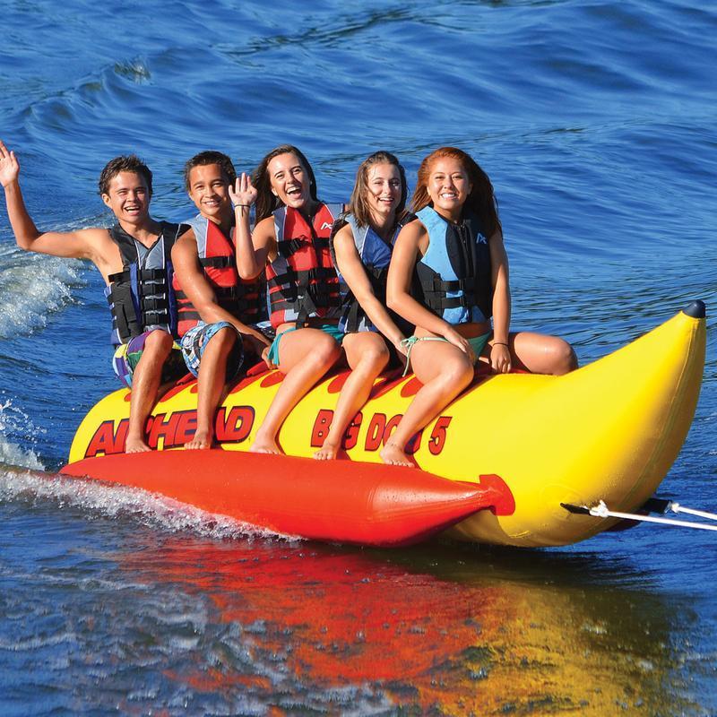 You’ve ridden these classic “banana" inflatables at beach resorts, having the time of your life; now it’s time to actually own a commercial grade BIG DOG! All seams are hot air overlap welded to increase durability. The double reinforced tow harness is equipped with two 316 stainless steel rings and a 316 stainless swivel to prevent twisting and damage to the tow rope.