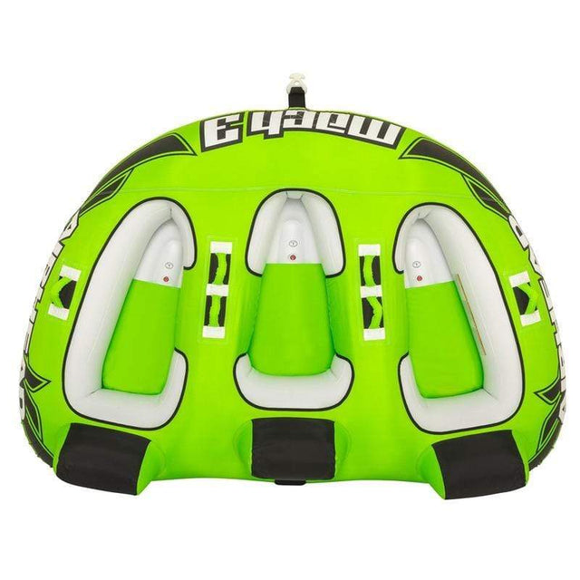 MACH 3 is our budget minded 2 rider cockpit towable. We recommend cockpit tubes for timid and young riders, since they feel very secure inside. MACH 3 also has a wild side, making teens and adults happy too. The inflated floors provide a comfortable seat. Six deluxe handles with neoprene knuckle guards provide a secure and comfortable grip. The heavy gauge PVC bladder and durable double-stitched nylon cover ensure years of service. Equipped with a patented Speed Safety Valve for easy inflating and deflating. 107 x 75 in.Normalized SKU: AHM31
