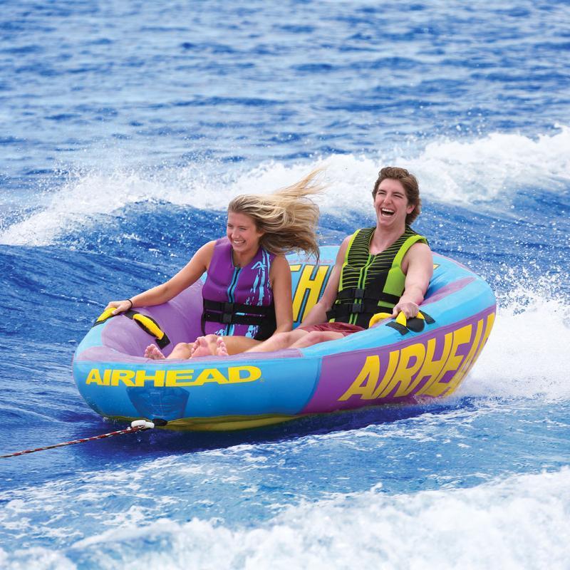 You’ll feel like a king, queen, prince or princess on AIRHEAD THRONE! Perhaps our most comfortable towables ever, the AIRHEAD Throne series are as popular as a roomy “sofa” as they are a towable! The tall reclining inflatable backrests and seats provide hours of lounging comfort and plenty of support for riders getting towed. AIRHEAD THRONE 2 is fully covered with double stitched nylon over 2 durable heavy gauge PVC bladders. A convenient Kwik-Connect allows for effortless rope attachment and detachment. You’ll appreciate the convenience of the 2 patented Speed Safety Valves, providing fast inflation and deflation with no parts to lose.