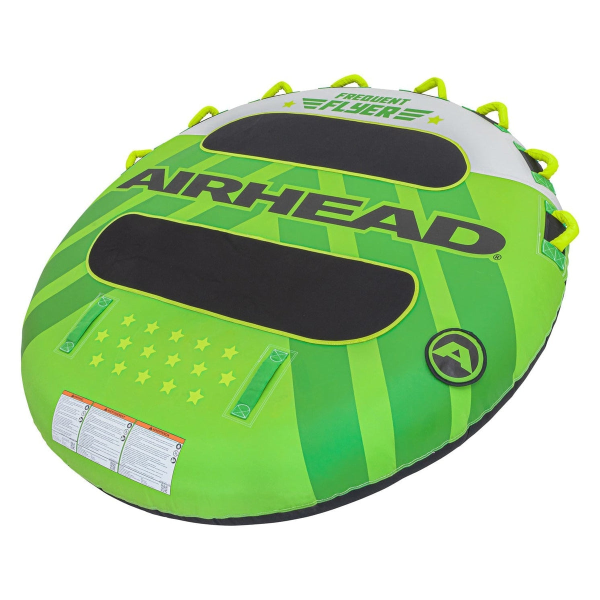 Grab your friends, jump on board the Frequent Flyer, and get ready for action! This huge flat deck towable for 1-3 riders has multiple Double Webbing Foam Handles with Knuckle Guards to enable various riding positions and two EVA Foam Body Pads for extra comfort. Rocket across the wake and skim around whips and turns over and over again on this classic re-designed inflatable deck tube from Sportsstuff. Featuring an Aluminum Quick Connect Tow Point to make attaching and detaching your tow rope quickly and easily, the Frequent Flyer also comes equipped with the patented Speed Safety Valve for the fastest inflation and deflation possible. New sleek custom graphics on the top and bottom of this classic deck towable will keep you and your friends coming back for more.