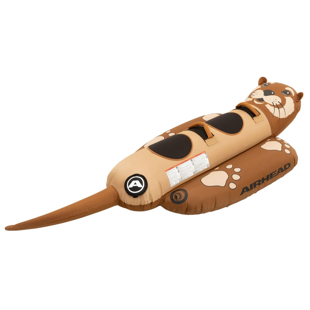 The kids will be otter-ly excited to ride this 1-2 rider towable tube, one sits in front and one kneels in back. RF welded PVC bladder is fully covered in durable nylon cover. Kwik-Connect included. Two foam filled nylon handles with knuckle guards for safety. Fully covered. Patented Speed Safety Valve for fast inflation and deflation. Comfy EVA padding for a smooth and enjoyable ride.