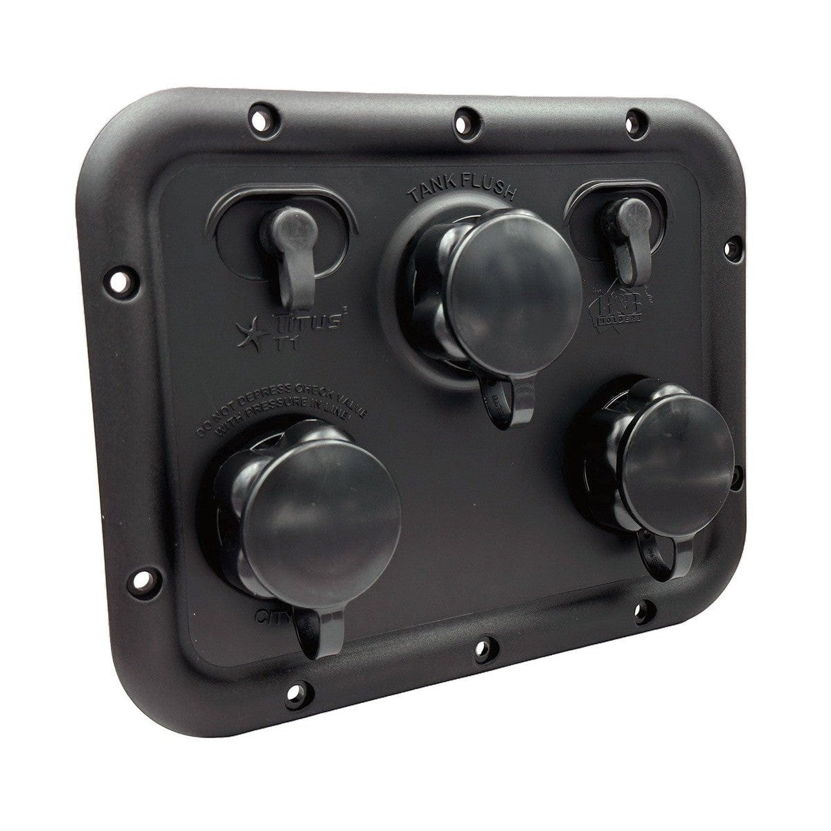 Titus plug and play water managent system. Welcome to a clean, easy to connect panel for multi-function water management. Direct OEM Replacement. One central wather hook-up location instead of many. Clean, streamlined appearance. Extrerior seal resists leakage.