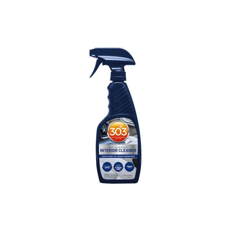 303 Automotive Interior Cleaner is a great cleaner for all of the interior surfaces of your vehicle. It is gentle and safe, but still has the strength to clean away tough stains. It lifts dirt from the surface when sprayed on, and wipes off residue free. This formula also helps repel dust and dirt, and leaves a clean natural appearance on the surface after using. 303 Automotive Interior Cleaner is safe and effective on: vinyl, plastic, rubber, leather, fabrics/upholstery, carpets, glass, and even LCD screens. Instructions: Shake well before using. Product can be sprayed directly onto surface, or onto a clean microfiber towel. Wipe or scrub surface to remove dirt or stain. Wipe dry with a microfiber towel. For best results, use regularly. Safe for use on all interior surfaces, including: vinyl, plastic, leather, upholstery, carpets, glass, and even LCD screens.